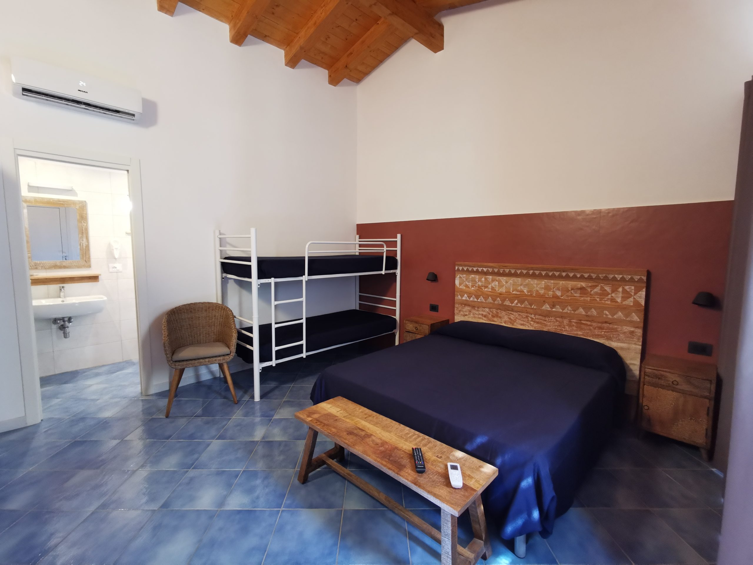 Il bungalow è composto da una camera da letto (con letto matrimoniale e letto a castello, quindi adatto ad una famiglia di 4 persone) e bagno con doccia. All’esterno c’è anche un piccolo terrazzino che dà sul rigoglioso giardino, dove rilassarsi.