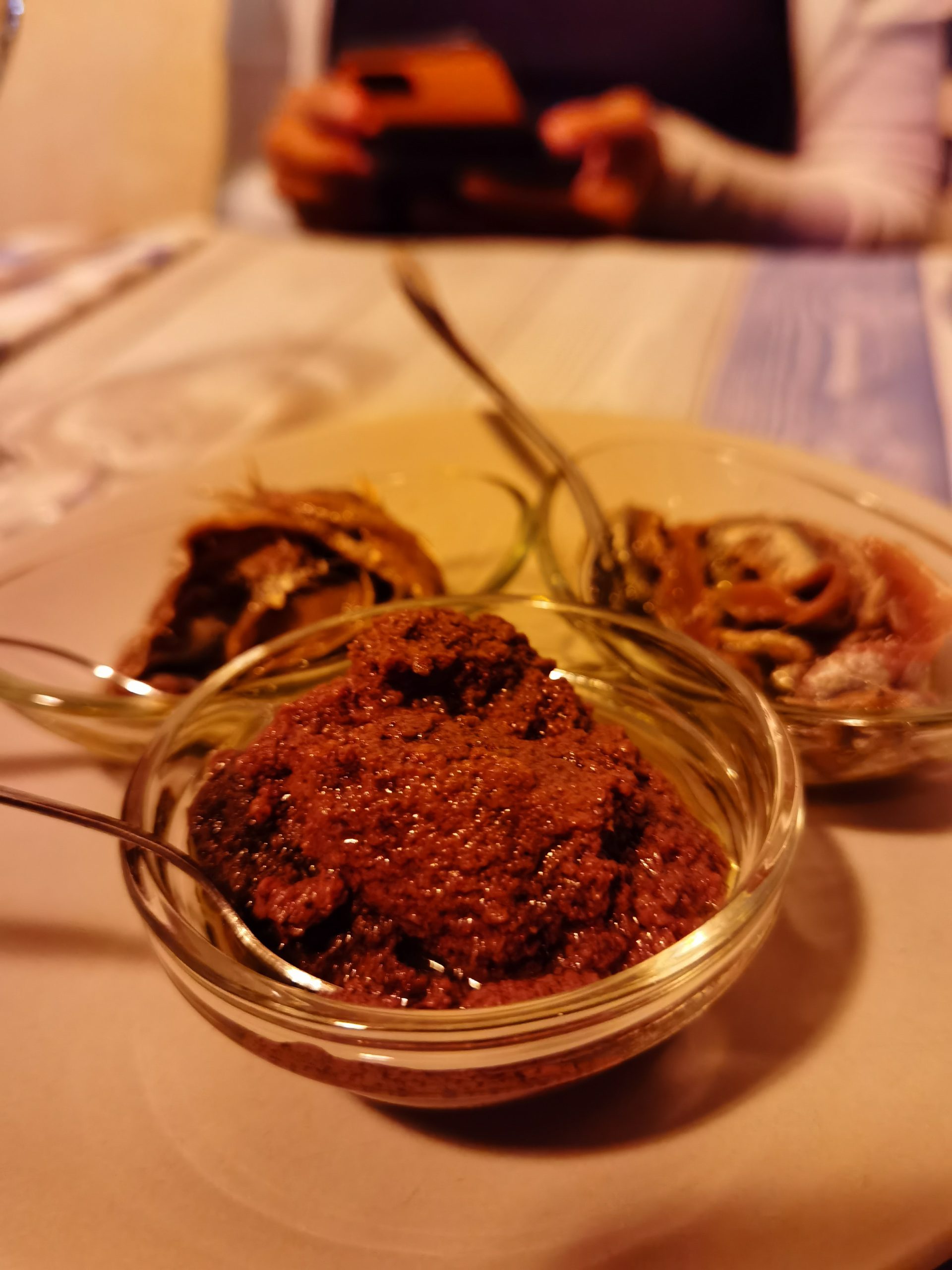 La seconda sera era il turno di uno splendido bistrot al centro di Gaeta, nella zona del Santuario della Santissima Annunziata. Il ristorantino ha dei tavolini all’esterno, per poter godere della brezza estiva. Qui, l’accoglienza familiare del proprietario ha reso l’esperienza culinaria ancora più interessante, accompagnando una spiegazione e qualche aneddoto all’uscita di ogni piatto.