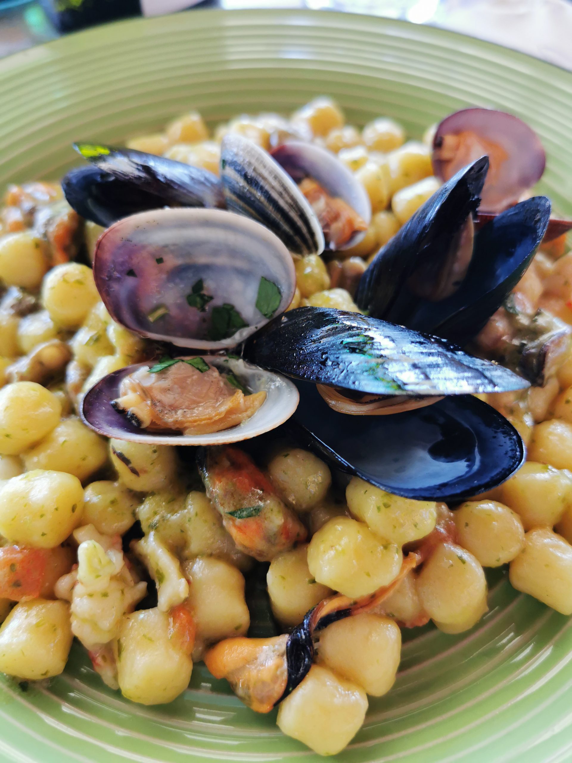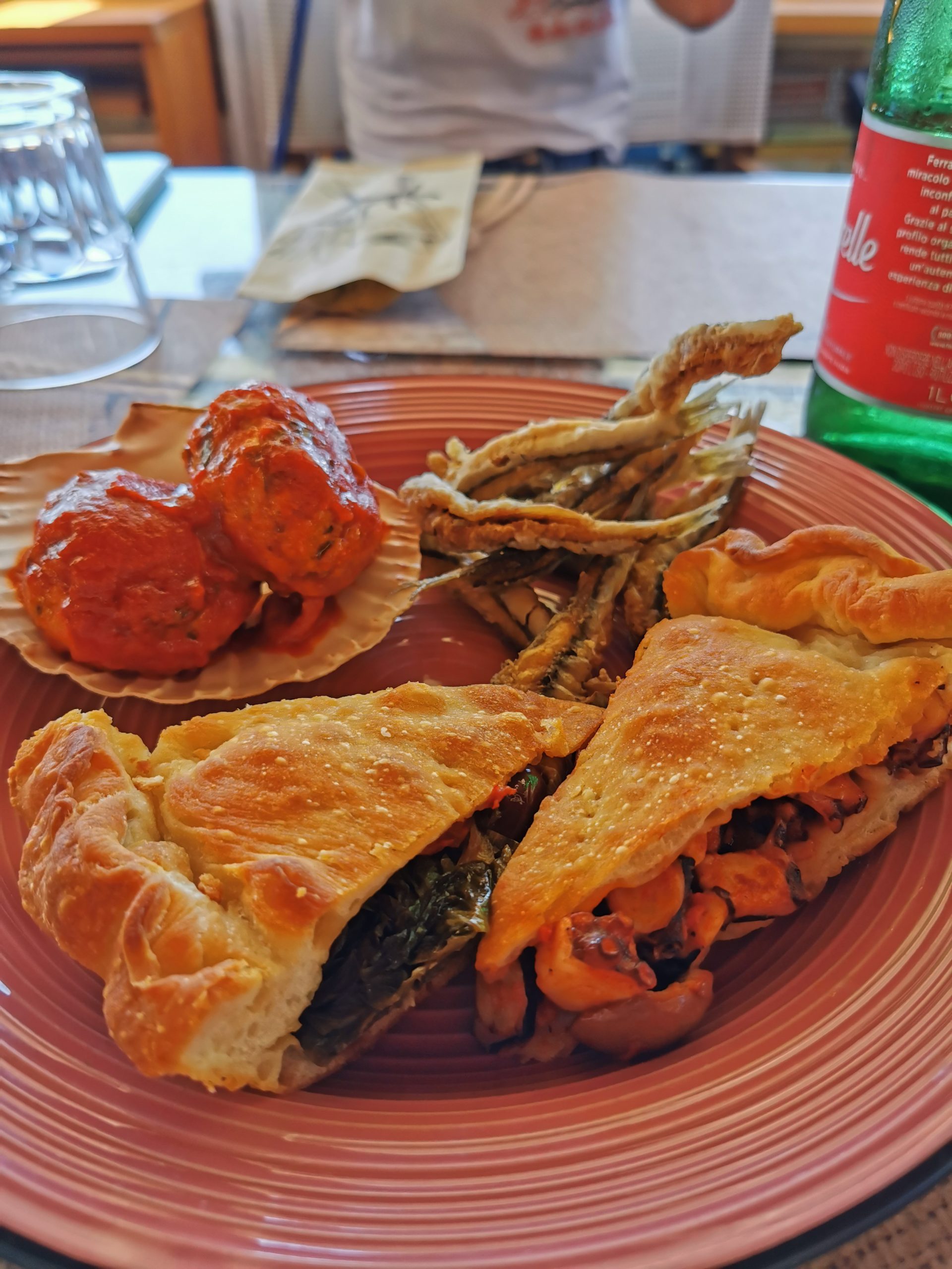 Ma, tornando a noi, il pranzo non era meno sorprendente: tra antipasti super ricchi (con polpette di alici, alici in pastella e, ovviamente, sua maestà la tiella) e gnocchetti ai frutti di mare, ci ha fatto davvero fatto alzare da tavola rotolando.