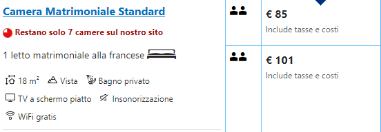 Il prezzo è di 42,50 euro a persona e tra i servizi inclusi troviamo un bagno privato e il WiFi.