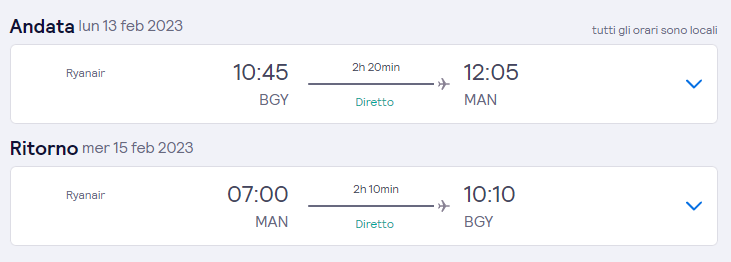 Aeroporto di arrivo: Manchester, Regno Unito
