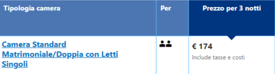 Il prezzo è di 87 euro a persona e tra i servizi inclusi troviamo il WiFi e la colazione.