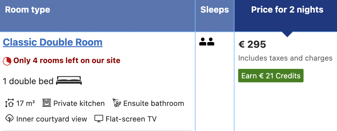 Il prezzo è di 147,5 euro a persona e tra i servizi inclusi troviamo un bagno privato, il WiFi e una cucina.