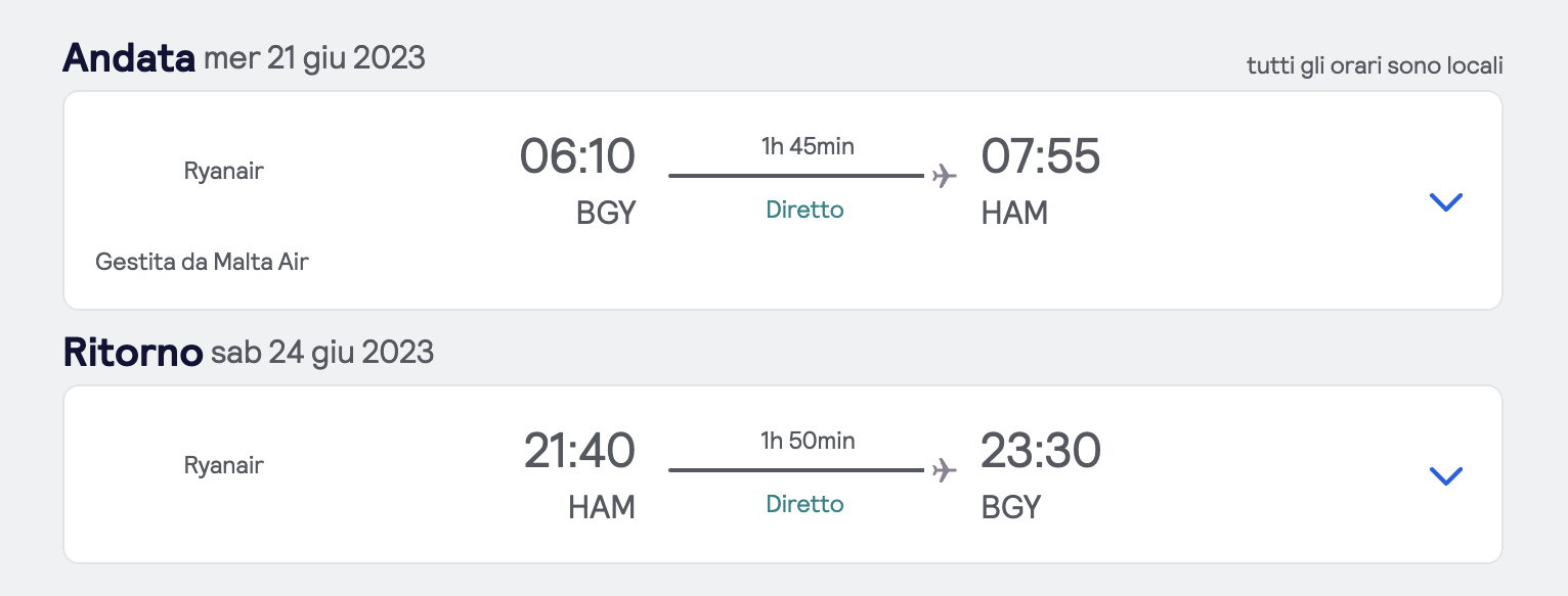 Aeroporto di partenza: Orio al Serio, Bergamo