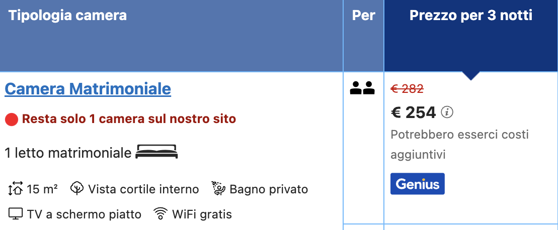 Il prezzo è di 127 euro a persona e tra i servizi inclusi troviamo il WiFi e il bagno privato.
