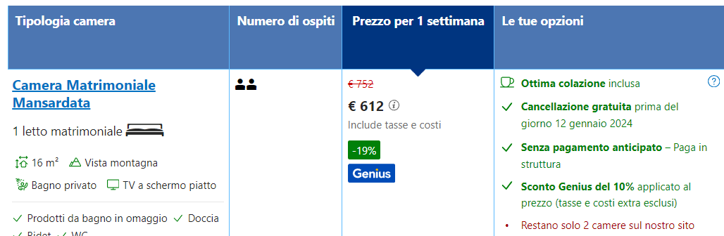 Il prezzo è di 306 euro a persona per 8 giorni, con cancellazione gratuita prima del giorno 12 gennaio 2024, senza alcun pagamento anticipato.