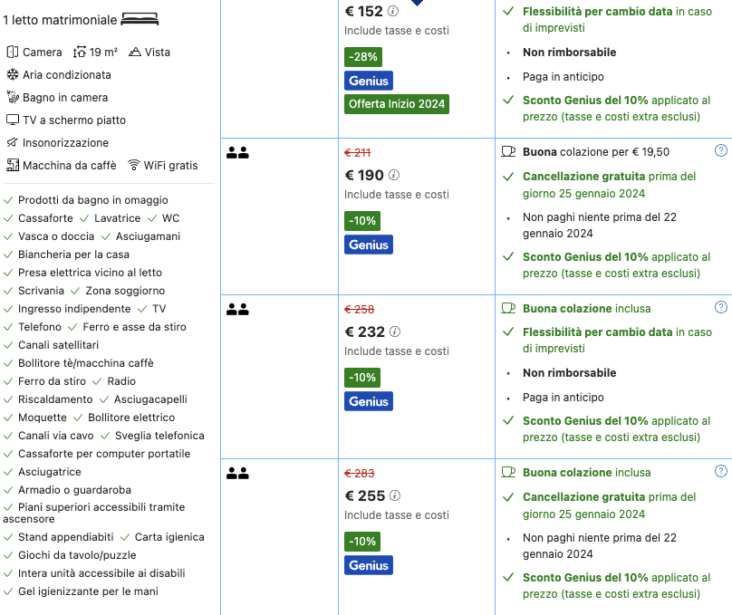 Se optate per la cancellazione gratuita prima del 25 gennaio, il prezzo totale sarà di 95 euro a persona e non include la colazione.