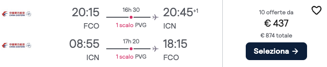 Il prezzo è di 437 euro a persona ed il volo è gestito dalla compagnia China Eastern.