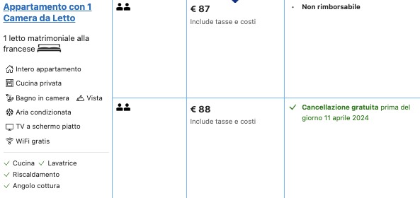 Optando per la cancellazione gratuita prima del giorno 11 aprile 2024, la tariffa è di 44 euro a persona.