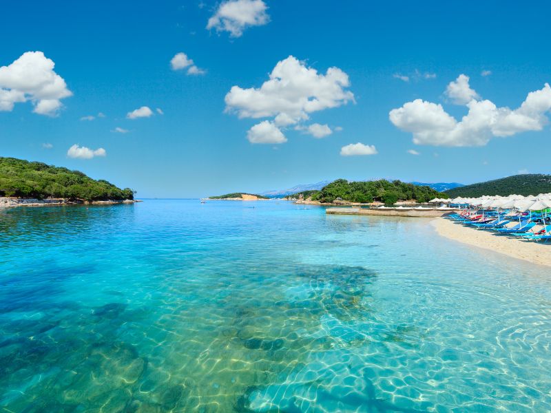 Ksamil, gioiello costiero dell’Albania, è un paradiso estivo con il suo mare turchese e le spiagge bagnate dal sole. Le acque cristalline cullano la costa, creando uno spettacolo mozzafiato. Le spiagge, con la loro sabbia dorata, invitano al relax e alle giornate al sole. I ristoranti locali offrono delizie culinarie a base di pesce fresco e piatti tradizionali. La vivace atmosfera estiva si manifesta nei bar lungo la spiaggia, dove si possono gustare cocktail al tramonto.