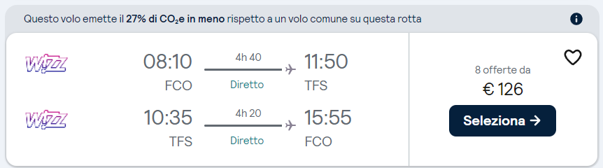 Il prezzo è di 126 euro a persona ed il volo è gestito dalla compagnia Wizzair.