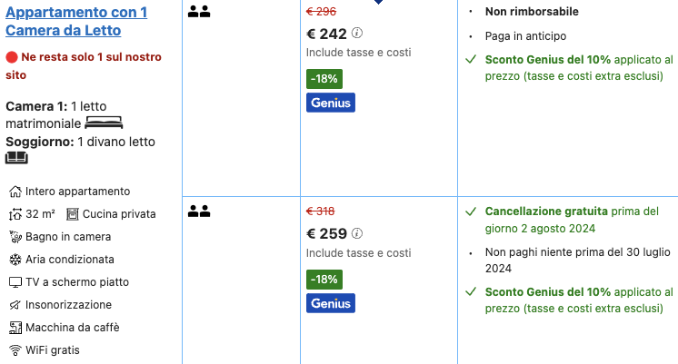 Optando per la cancellazione gratuita prima del 2 agosto la tariffa è di 129,5 euro a persona.