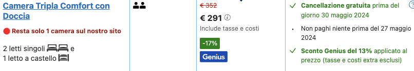 La tariffa è di 145,5 euro a persona, e comprende la cancellazione gratuita prima del 30 maggio 2024.